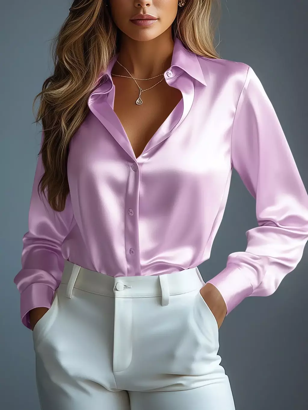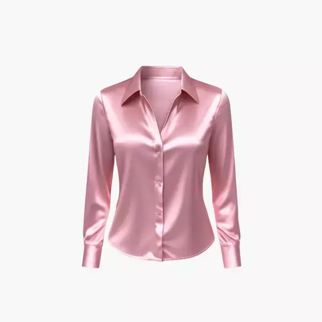 Camisa Feminina de Cetim Elegante Rosa